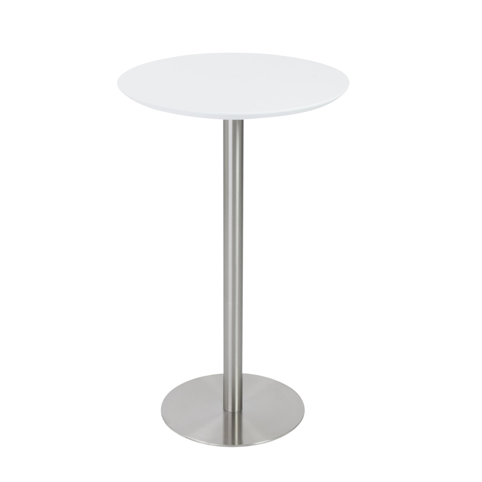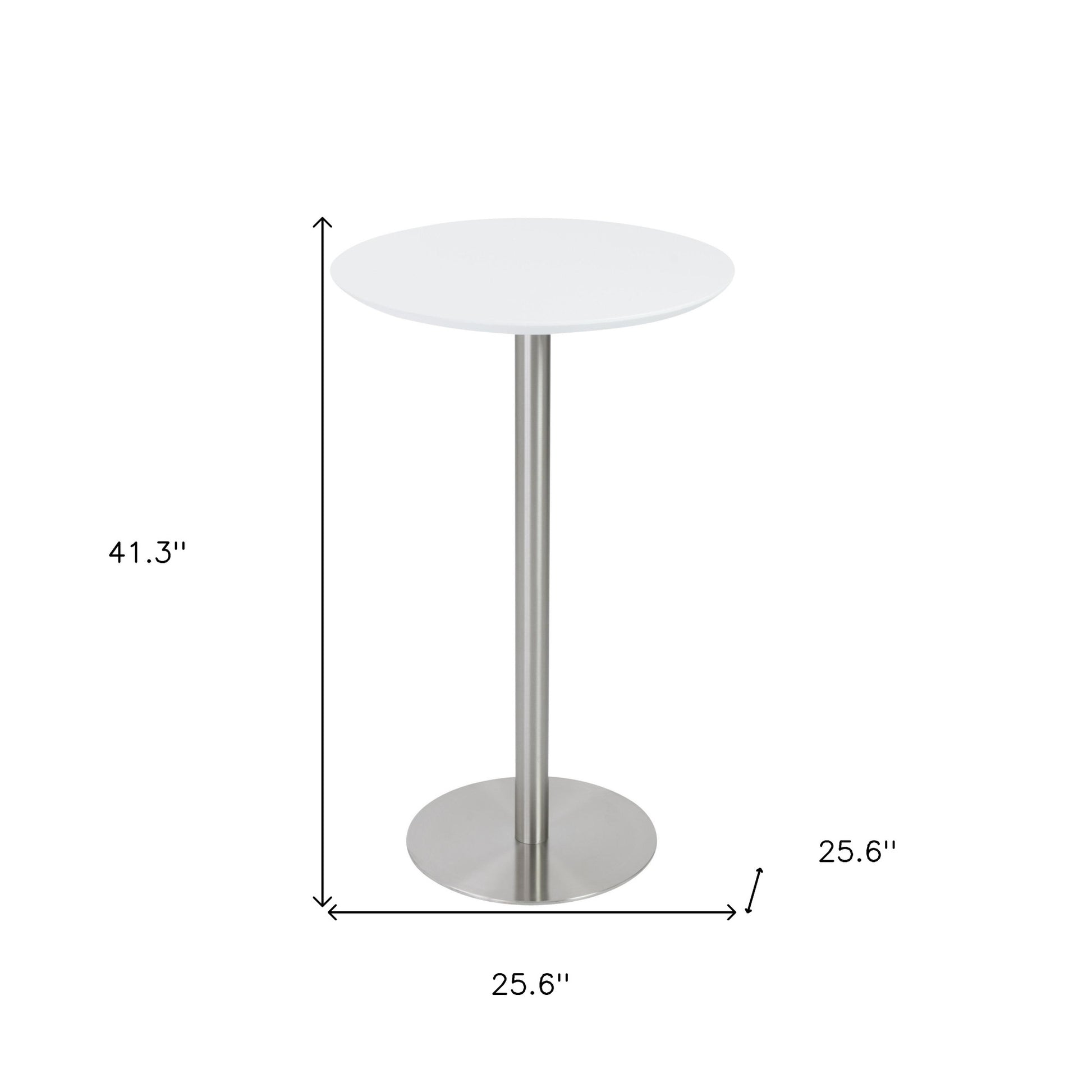 Elevate your dining space with the modern charm of this 26-inch rounded stainless steel bar table. Crafted with a sleek stainless steel base in a silver finish, this table features a round manufactured wood top in a matching brown hue, creating a cohesive look. The fixed table mechanism ensures stability, while the pedestal base offers stylish support. Perfect for intimate gatherings or casual meals, this bar table combines contemporary design with quality materials to enhance your bar or restaurant décor effortlessly. Add a touch of sophistication to your space with this stylish and functional piece that seamlessly blends with various interior styles. 41.3-inch h x 25.6-inch w x 25.6-inch d.