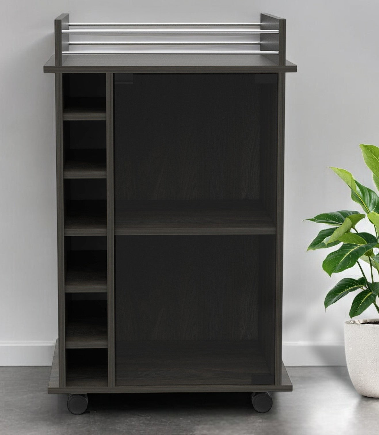 22" Espresso Wood Rolling Bar Cart With Wine Storage