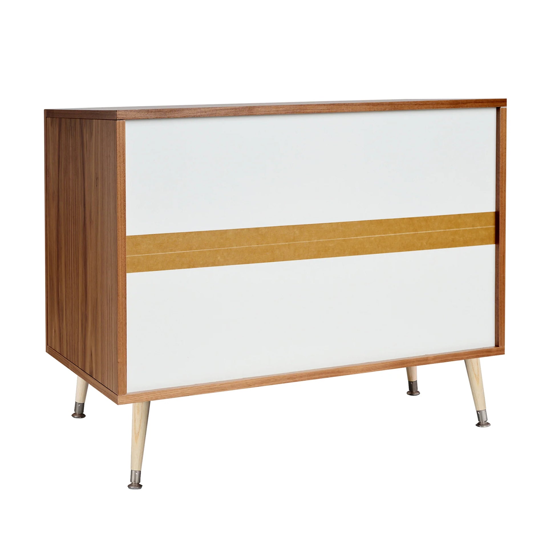 - Engineered wood with a walnut wood veneer and ultra smooth durable gloss finish