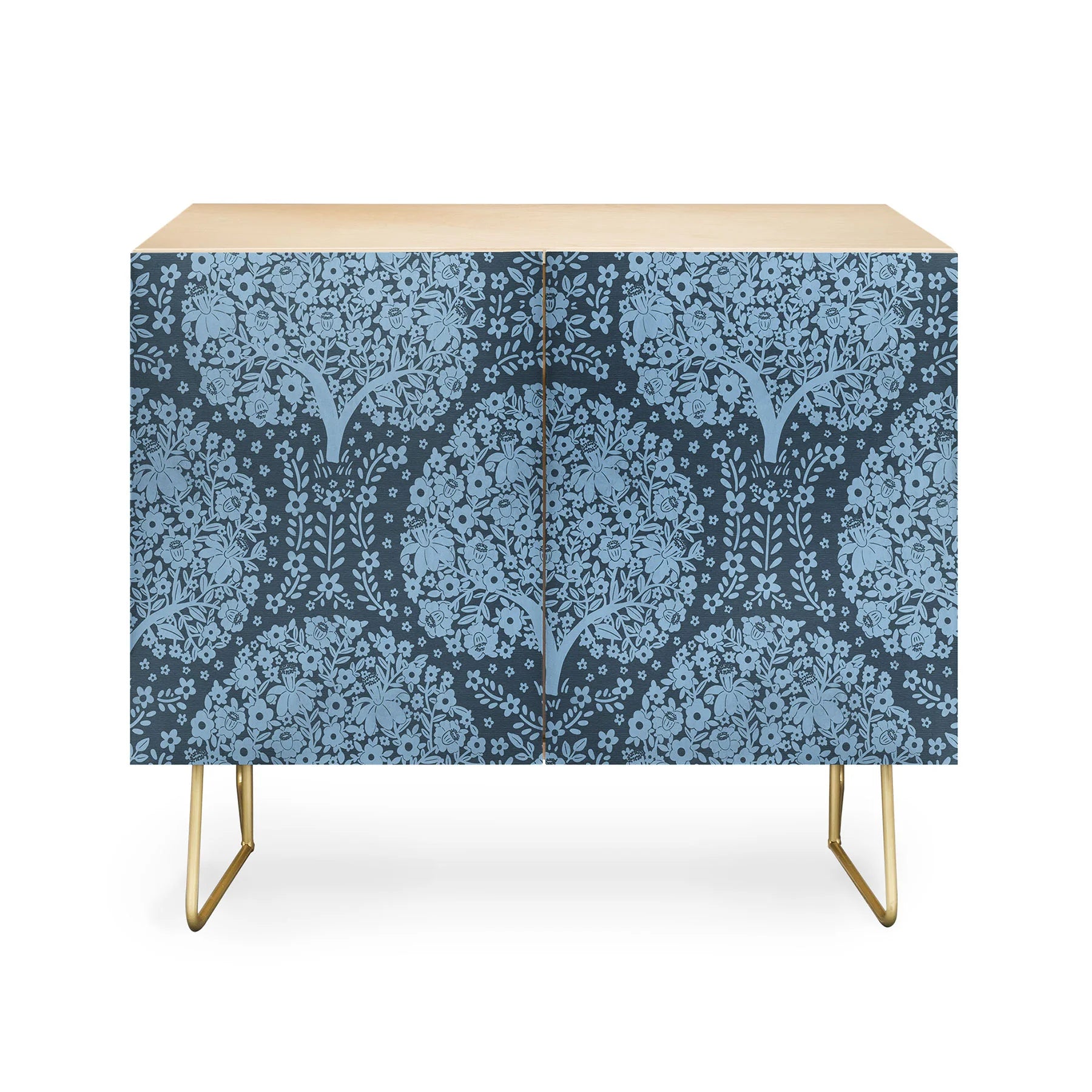 The Marta Flowering Trees Forest Cabinet Credenza brings natural serenity to mid-century modern design. This elegant piece features Marta's lush botanical composition on its Baltic Birch cabinet doors, complemented by sleek curved steel legs. Its nature-inspired aesthetic creates a calming presence in any room while maintaining functional versatility—ideal for workspace organization, media storage, or entertaining. Available in warm natural or rich walnut veneer finishes, it harmonizes with diverse interior styles. Each purchase directly supports the artist, allowing you to invest in exceptional design while championing creative communities and artistic expression globally.