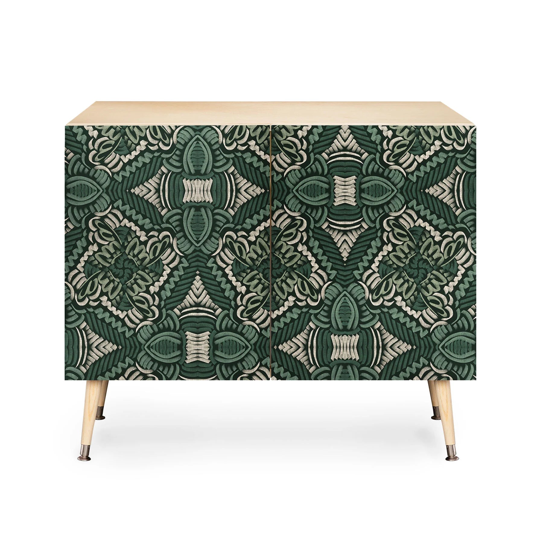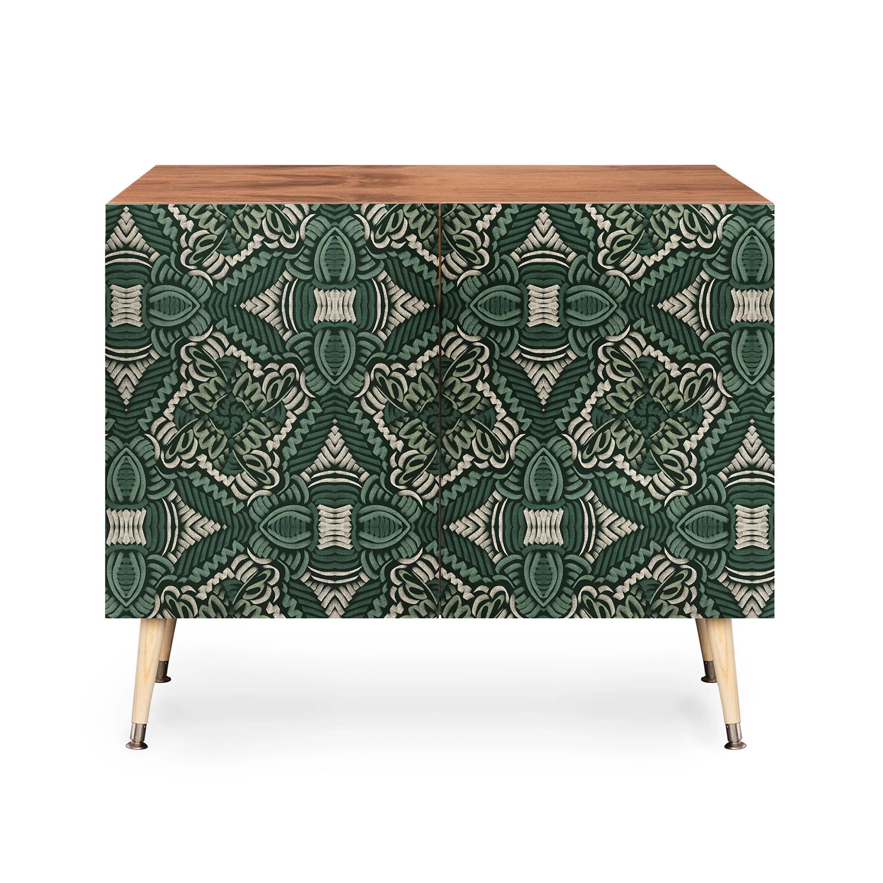 The Marta Camarasa Intricate Forest Mosaic Cabinet Credenza captures the complexity of nature through refined mid-century modern craftsmanship. Featuring an intricate forest mosaic pattern on Baltic Birch doors, this credenza is anchored by elegantly curved steel legs that emphasize its sophisticated profile. Ideal for office organization, media display, or bar service, its versatile design integrates seamlessly into any interior scheme. Choose between a naturally warm finish or sumptuous walnut veneer to reflect your aesthetic vision. Each purchase directly supports the artist, transforming your furniture investment into meaningful patronage of creative excellence across the globe.