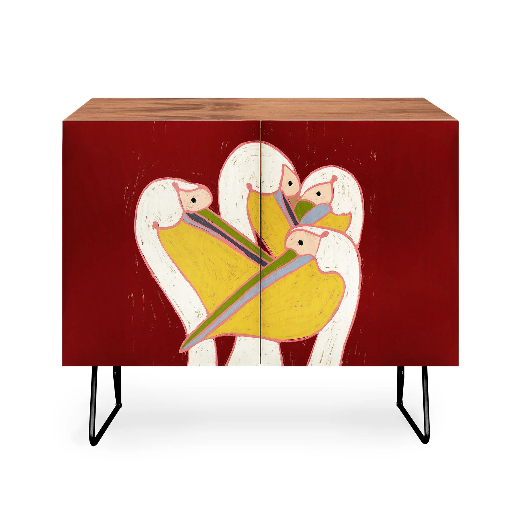 Oranges pelicans of the burgundy sky cabinet credenza