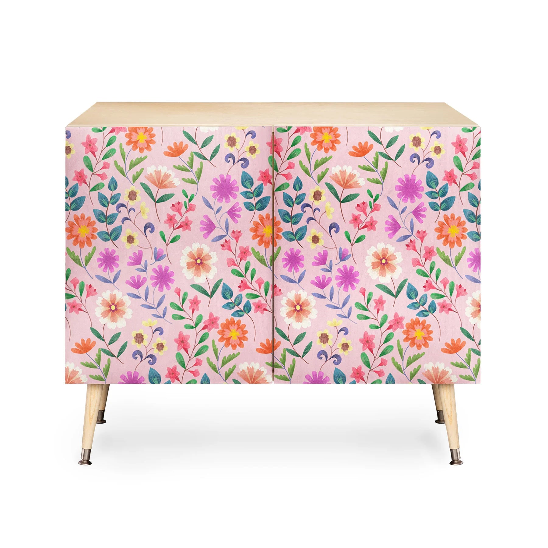 This pimlada phuapradit ditsy floral pink credenza features a charming and whimsical design by artist Pimlada Phuapradit. Made of solid wood, this credenza is both functional and decorative, providing ample storage space while adding a touch of nature-inspired beauty to any room.