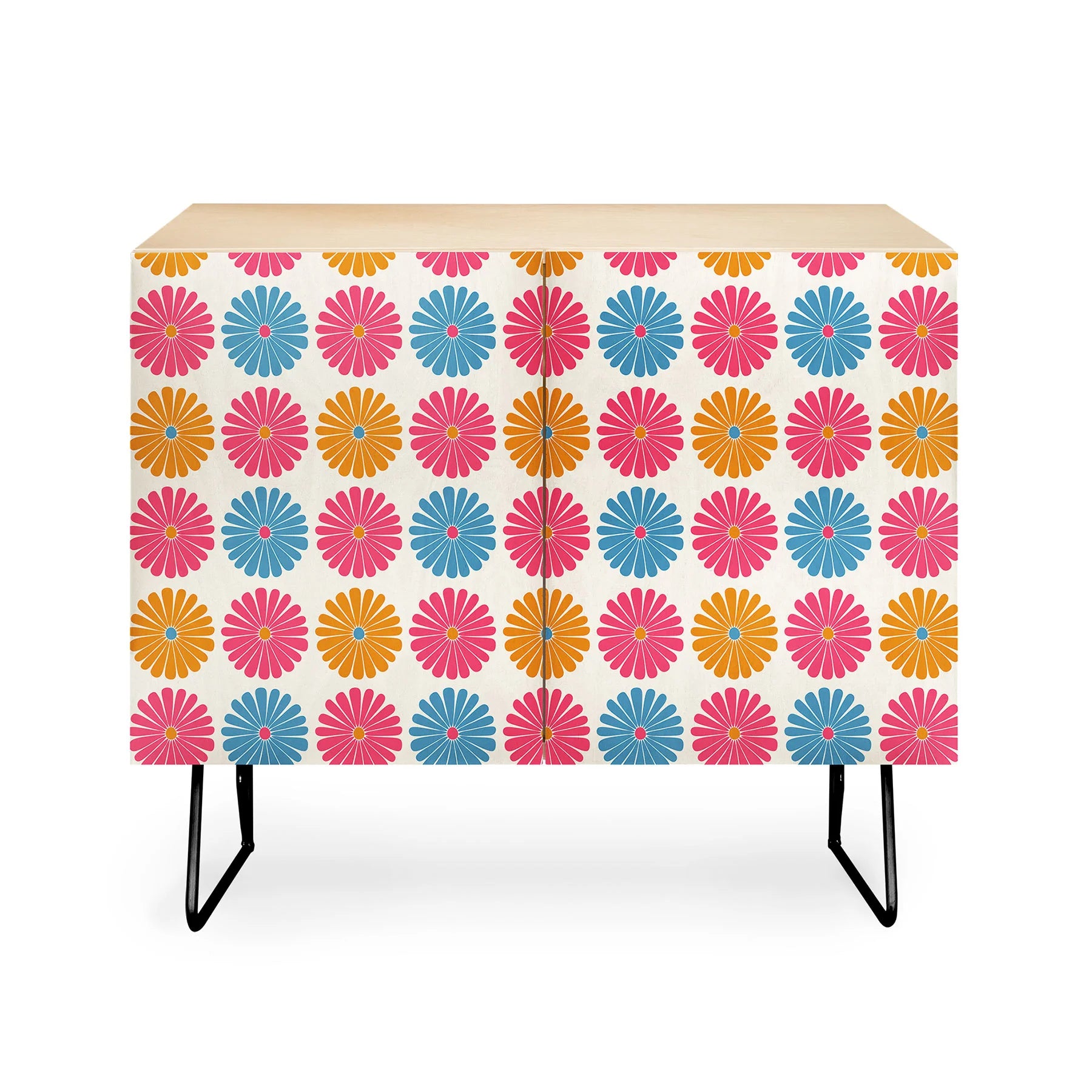 Elevate your home office with our Poems Daisy Pattern Multicolor II Credenza. This expertly crafted piece features a unique floral pattern, adding a touch of elegance to any workspace. With its ample storage and sturdy construction, it's both functional and stylish. Upgrade your office today.