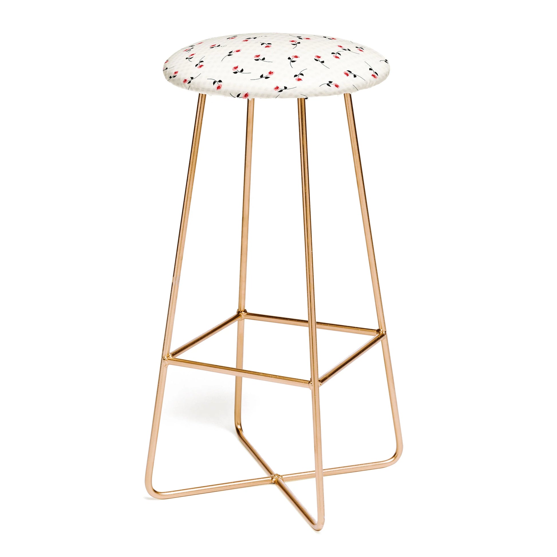 Elevate your space with the Deny Designs tiny roses on gingham bar stool—where artistry meets functionality. This sophisticated seating features tapered steel legs available in black or gold, complemented by luxurious faux-leather upholstery that seamlessly blends modern style with timeless charm. The built-in footrest provides comfort for extended sitting, while the eye-catching gingham rose pattern lets your personality shine through. Measuring 15" L x 15" D x 30" H, it arrives ready to use with no assembly required. Every purchase supports the artist behind the design, making this stool a meaningful addition to your home that celebrates creative craftsmanship.