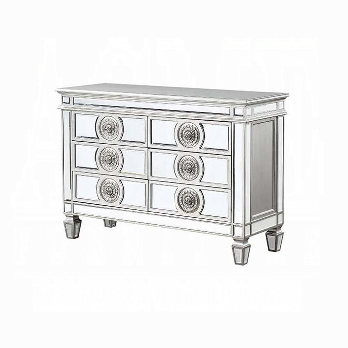 • Wooden Top & Frame, Raised Trim, Beveled-Mirror Inlay ((Door/Drawer/Case), Tapered Leg